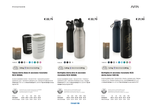 Acciaio inossidabile riciclato • Volume 0,5 litri • Ermetica • Isolamento vuoto • Mantiene il caldo per 10 ore • Mantiene il freddo per 20 ore • Anello Dimensioni cm Area di stampa 140 x 221 mm Tipo di stampa Stampa digitale 360°