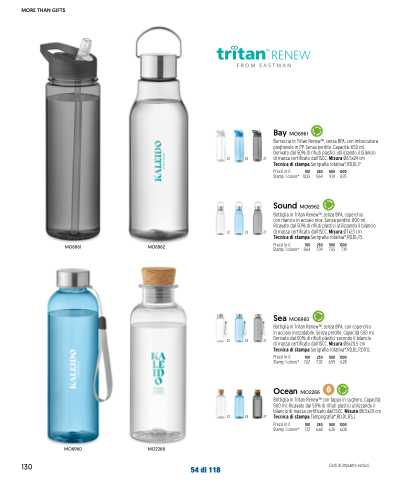 Bottiglia in Tritan RenewTM con tappo in sughero. Capacità: 500 ml. Ricavato dal 50% di rifiuti plastici utilizzando il bilancio di massa certificato dall’ISCC. Misura Ø6,5x20 cm