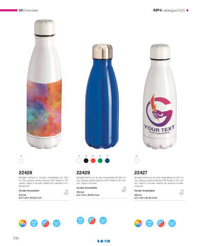 Bottiglia termica in acciaio inossidabile da 350 ml. Con doppia parete isolante (24h freddo e 12h cal- do). Tappo in acciaio. Adatta per stampa in subli- mazione.