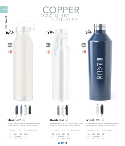 Insulated Bottle. Stainless Steel. 800 ml. Copper Vacuum Insulated.