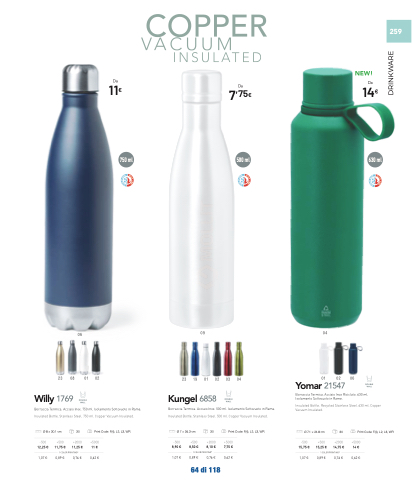 Borraccia Termica. Acciaio Inox. 500 ml. Isolamento Sottovuoto in Rame.