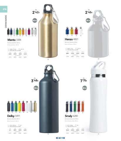Mento 3384 Borraccia. Alluminio. 400 ml.
