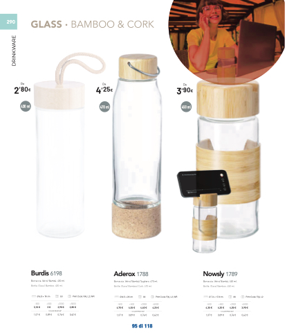 Aderox 1788 Borraccia. Vetro/ Bambù/ Sughero. 470 ml.